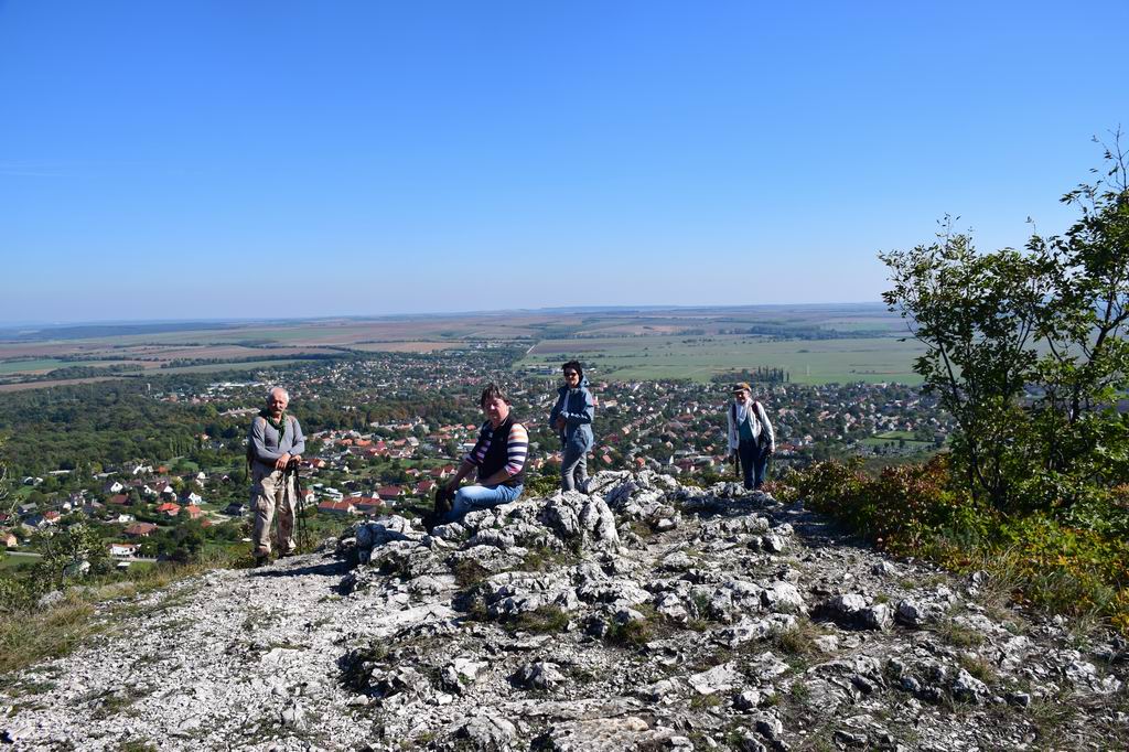 Szombaton ragyogó időben húszan túráztunk a Vértesben, Csákvár környékén. Változatos terepen gyalogoltunk, talán csak az hiányzott, hogy októberhez képest a cserszömörcék nem virítottak úgy, mint korábban ilyenkor megszoktuk. 5 kocsival jutottunk 9 óra környékén a Haraszthegyi parkírozóba. Az út tulajdonképpen két körből állt (egy fordított nyolcasra hasonlított), a rövidebb túrát választók (10 fő) a nagyobbik kört, a hosszabb távosok pedig mindkettőt megjárták. A nagyobbik kört a rövidtúrások az óra járásával ellenkező irányban járták be. Az út a hegy oldalában kevés emelkedővel a szélső házak fölött vezetett. Első látnivaló a Csákvári odú nevezetű kisebb barlang volt, utána jött az emberpróbáló Kerek-hegyi kilátópont (ezt csak a csoport négy férfitagja mászta meg) aztán jött a Kálvária-völgy, majd a túra legmagasabb pontja a Haraszt-hegy oldalában. Innentől már csak lefelé vezetett az út helyenként szép kilátással a mélyen szabdalt dolomit sziklahátakra. Visszaérve a parkolóba, akinek nem volt hosszútúrás utasa, az hazaindult
