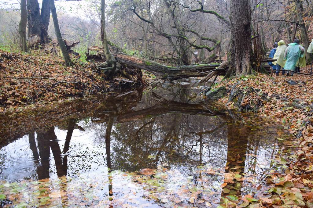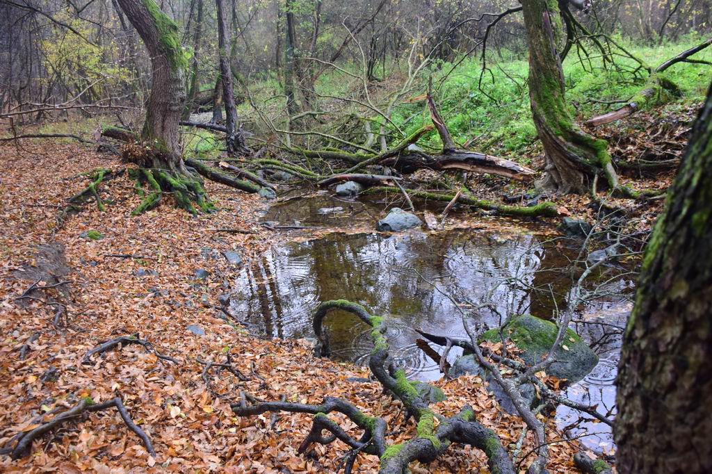 11.08-án, szombaton a Cserhát egy kevésbé ismert, de rendkívül látványos patakvölgyét érintve tettünk egy körutat Ecsegről. 24-en voltunk, személygépkocsikkal utaztunk. Gödöllőn találkoztunk 7:25–kor, majd egyórás utazás után Ecsegen kászálódtunk ki a kocsiból. Éppen esett az eső, ami szerencsére hamarosan elállt. A falu után szerény pincesor következett, majd beértünk az erdőbe. Hamarosan a Szuha-patak mellé értünk, majd utunkat egy hatalmas völgyzáró gát keresztezte. Ezt 2015-ben építették záportározónak. Azt hiszem ezekben az aszályos időkben rég telt meg utoljára. 700 m-re a Zsunyi-patak egyesült a Szuha-patakkal, ezután már az előbbi nevű mellet gyalogoltunk kis emelkedővel. Igazi vadregényes volt a patakvölgy, átkelőkkel, sziklákkal, vízparti fákkal. A Hármas-forrásnál - nevének megfelelően - valóban három helyről (igaz a baloldali elég gyéren) folyt a kissé meleg, és enyhén vasas ízű víz. A középső – kiépített - forrás magyar viszonylatban kimondottan bővizűnek számít. Cserhátszentiván szélén egy felhagyott kőfejtő mellett haladtunk el. Valamikor itt is volt egy meleg vizű forrás, amelyre egy fürdő is épült. Hamarosan kikapaszkodtunk a völgyből, és az OKT-útvonalán a Bableves-csárdáig mentünk. Itt rátértünk a K háromszög jelzésre, és megálltunk ebédelni. „Jól időzítettünk”, mert éppen elkezdett megint esni az eső. Eredetileg a K▲-ön felmentünk volna a Bézna-csúcsra, de két hete azt olvastam róla, hogy több járhatatlan része is van, így nem kockáztattunk. Előbb a K négyszög jelzésen, majd jelzetlen úton értünk vissza Ecsegre egyre jobb időben, végig lejtős úton.