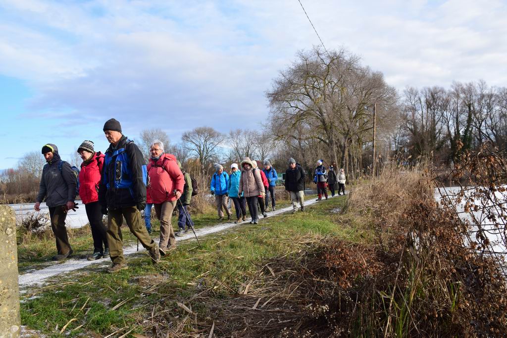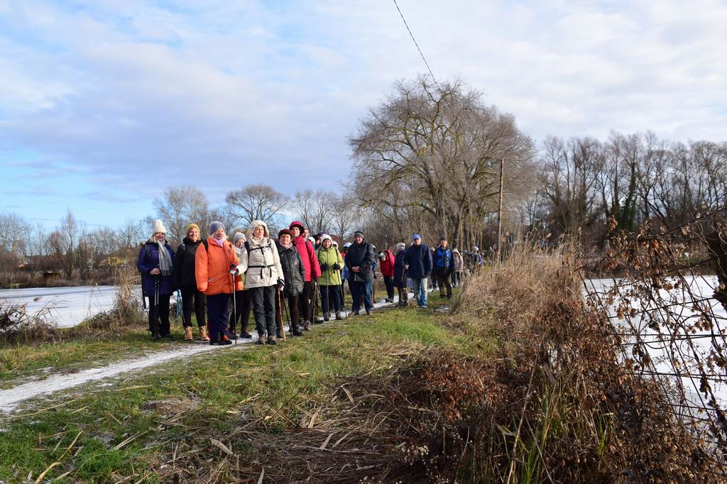 01.03-án ez év első túráján a Gödöllői dombságban jártunk. Isaszegen, a vasútállomáson volt a találkozó, innen indult a túra. 39 en gyűltünk össze.Isaszeg házait elhagyva a Tőzeg- tavak mellett haladtunk, aminek nagy részét jég borította. Az üdülőterület néhány utcáján sétálva elértünk egy szép porta elé. Kovács Marika túratársunk felajánlotta nyaralója udvarát, ahol terített asztalt csináltunk. Előkerültek a hátizsákokból az otthonról hozott finom sütik, italok. Így köszöntöttük egymást, és az új évet. Miután megpihentünk, elfogyasztottuk a finomságokat, folytattuk a túránkat. Egy darabig együtt, majd különvált a rövid és hosszabb túrások csapata. A rövid túrások néhány km, és egy kis emelkedő (6 km, 54 m szintkülönbség) után visszajutottunk a tavakhoz, ahonnan hamarosan a vasútállomásra értek. Kezdetnek jó túra volt, jó idővel, jó társasággal, jókedvvel és bőséggel.